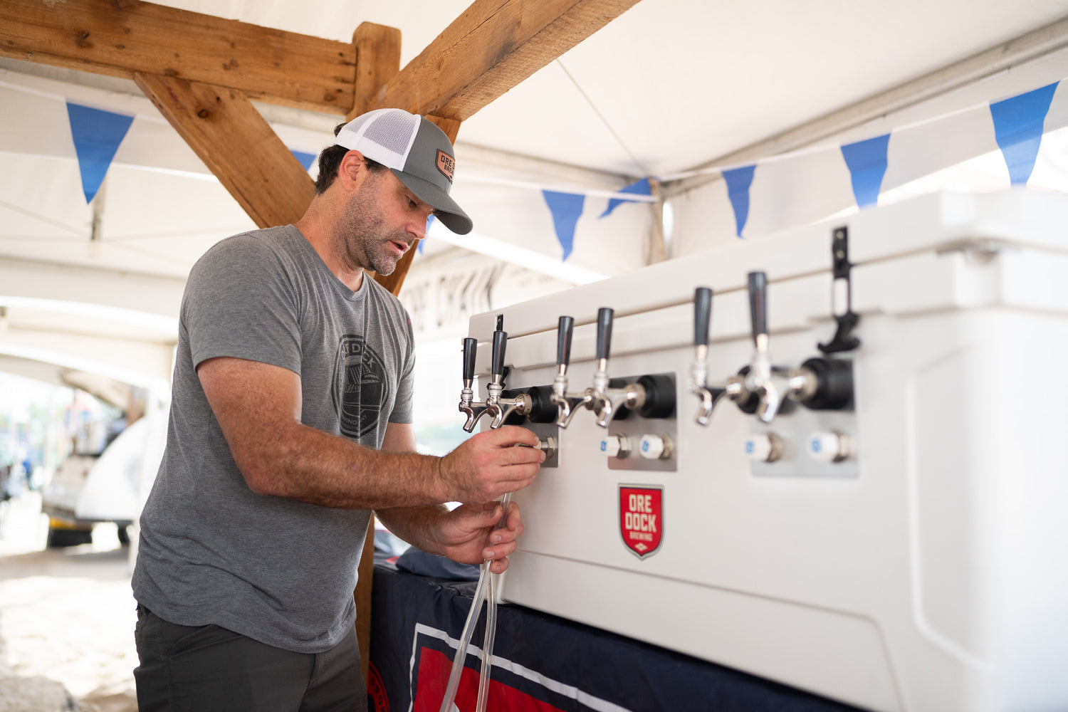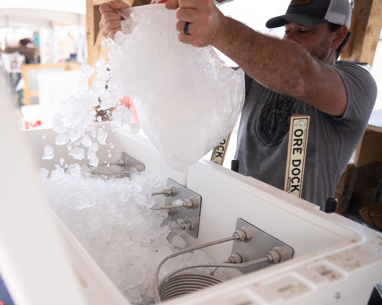 While our jockey boxes are available in a variety of styles, the internal components we use to manufacture them are all the same, making them an efficient draft beer system. The model shown below may be different than the one you purchased, but the applications transfer. Beer jockey boxes are designed to maintain the ideal serving temperature for beer by passing it through stainless steel coils chilled by ice, ensuring a consistently cold pour without the need for electricity.