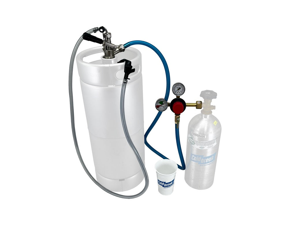 The Coldbreak PartyTap™ is the modern upgrade. Instead of pumping air into your keg, it uses a real CO₂ tank and regulator—just like the pros use—so your beer stays perfectly carbonated and fresh from the first pint to the last.