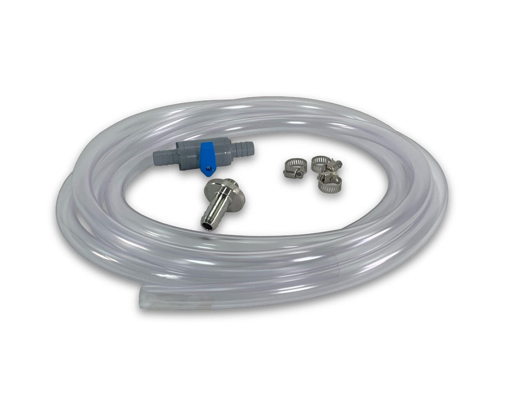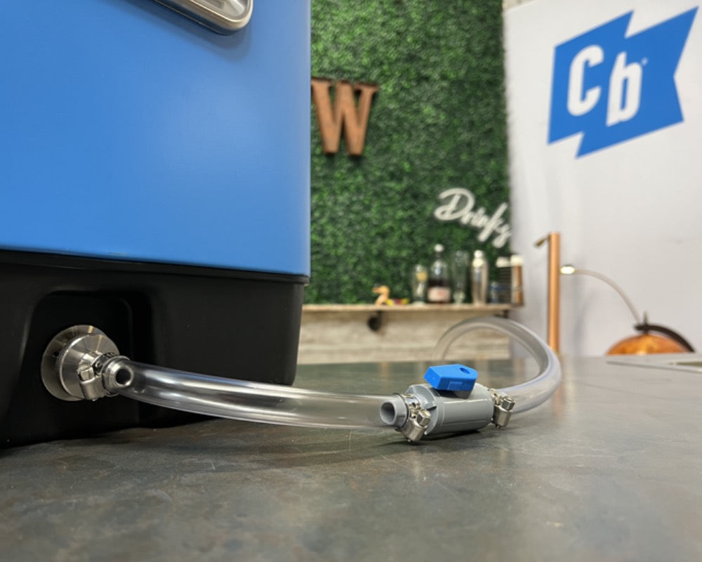 Stainless steel drain plug with barb that will fit all Coldbreak® 54qt coolers. Allows you to drain your jockey or jumper box in-place without having to lift and dump. Tubing cuts easily with scissors so the included inline ball valve can be placed in the desired location.