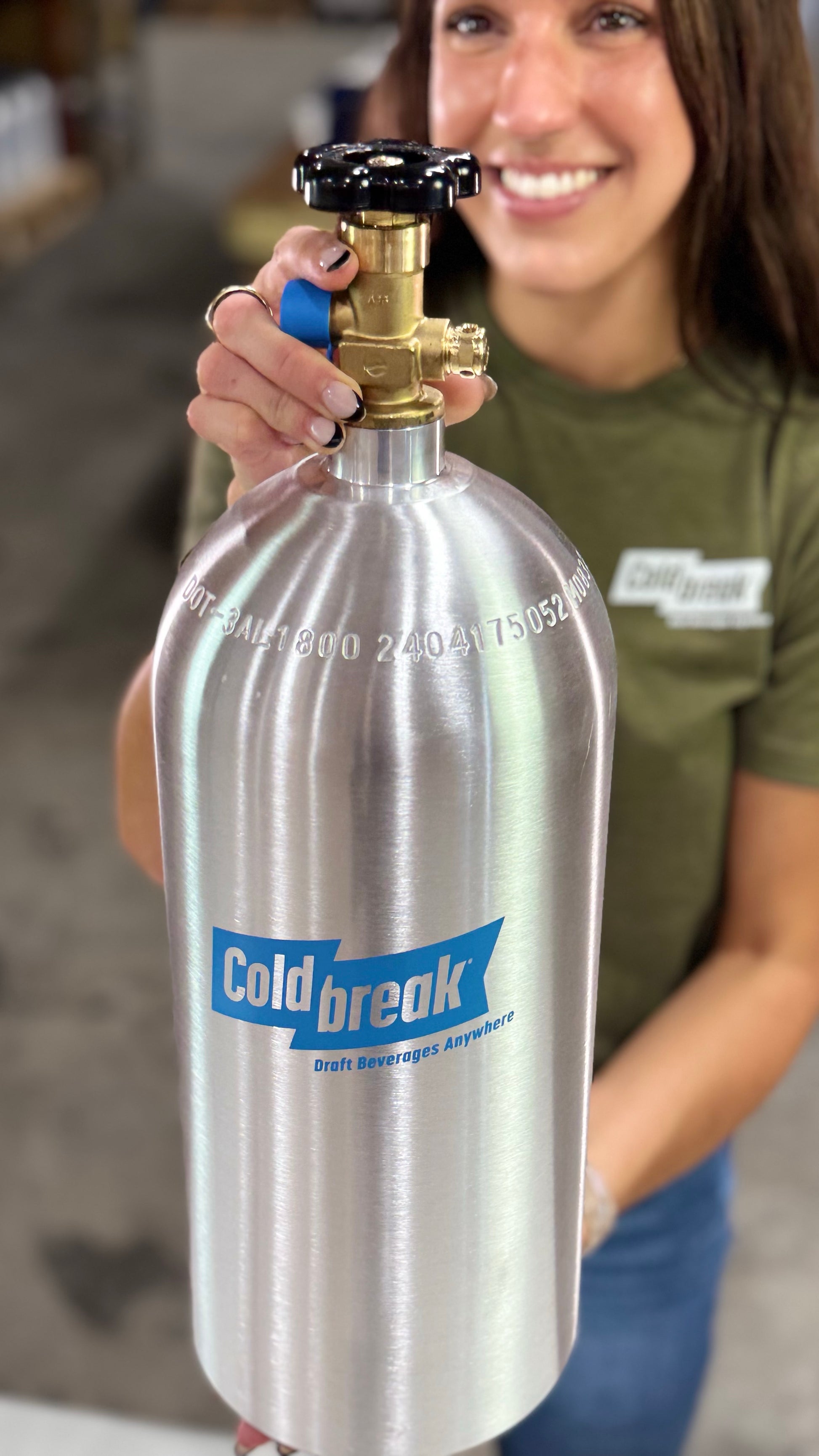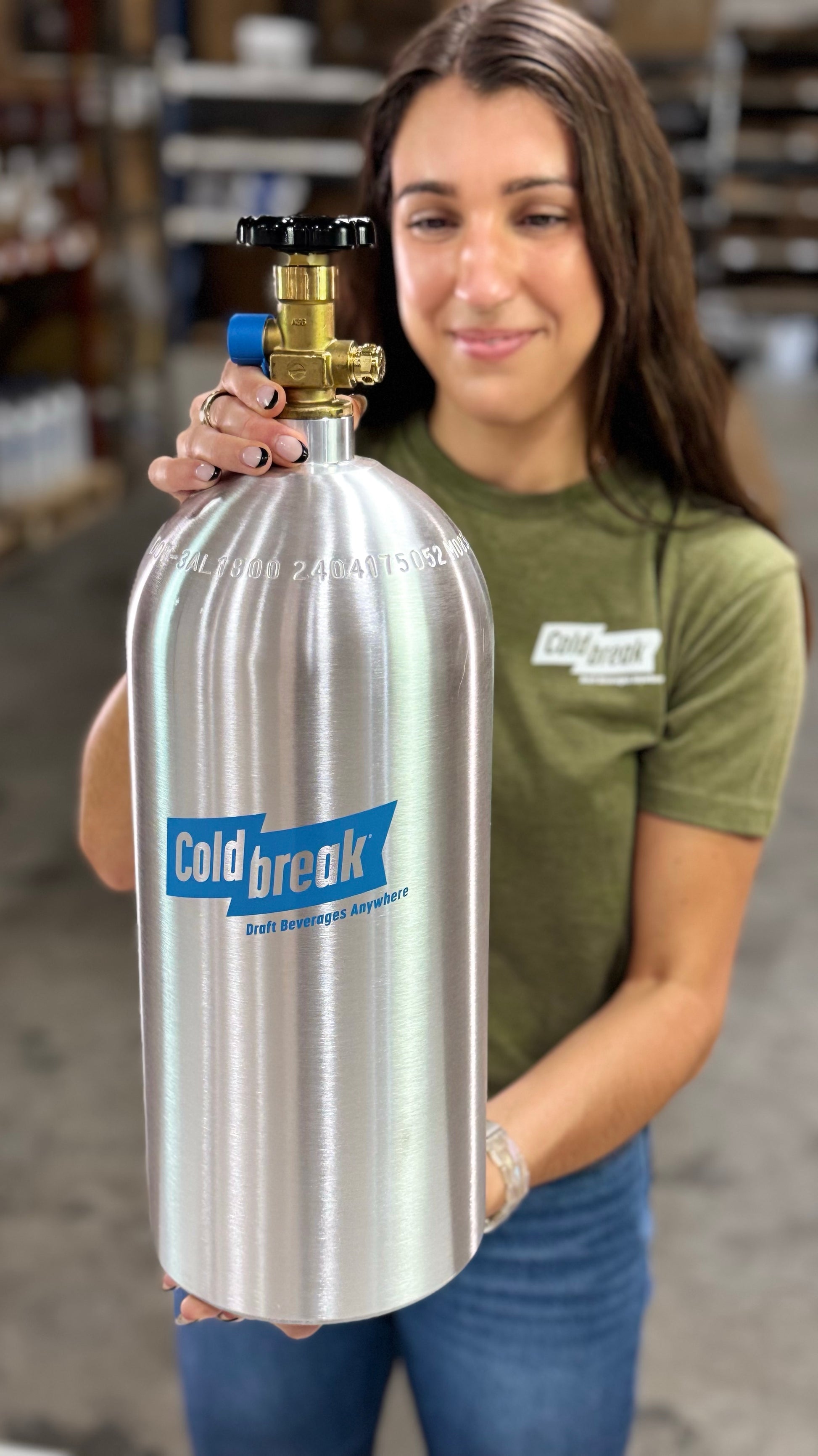 Each tank is equipped with current hydro testing for safety and compliance. Its capacity can dispense 10-12 standard kegs (1/2 barrels) or ~35 homebrew kegs (5 gallons), so it's ideal for various beverage dispensing needs.
