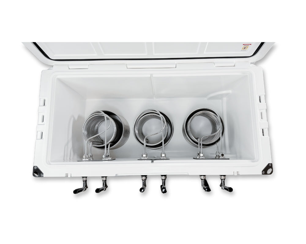 The centerpiece of your draft system. It uses stainless steel coils submerged in ice to instantly chill your beverage as it’s served—no electricity needed. Cold pours, anywhere.