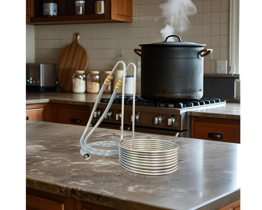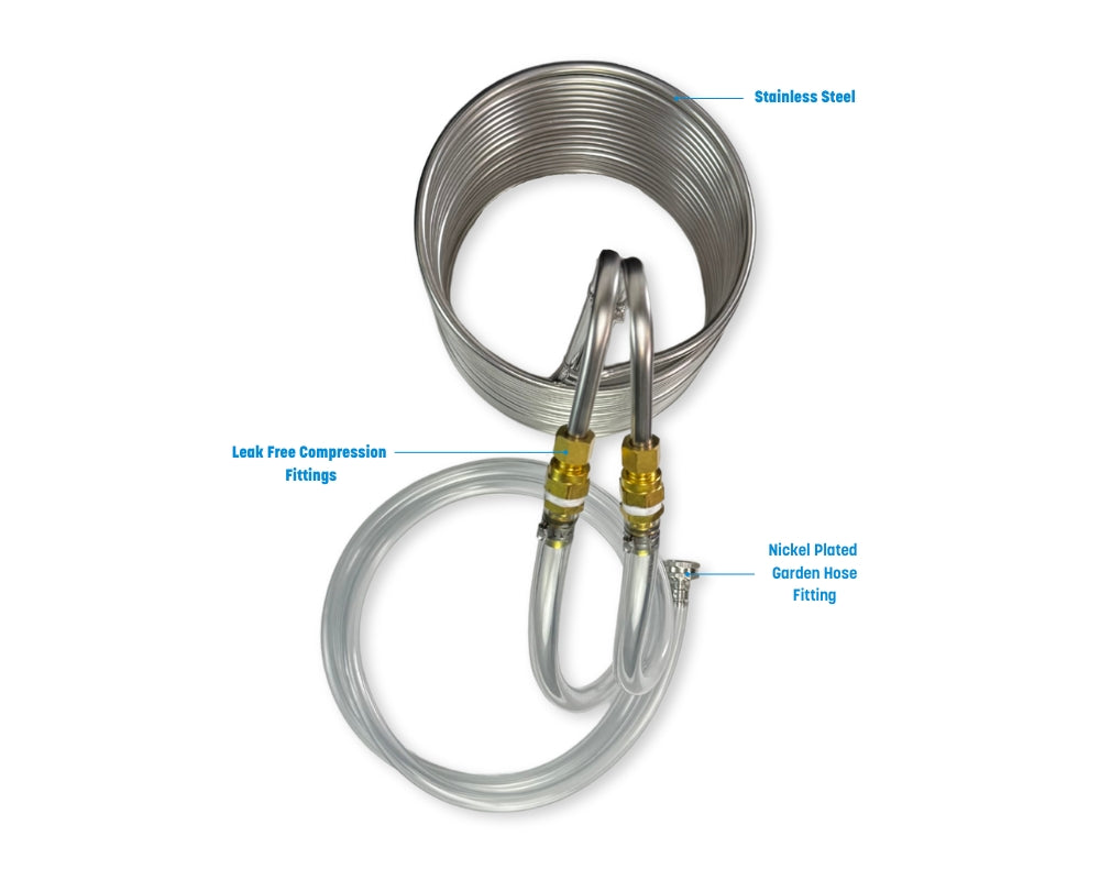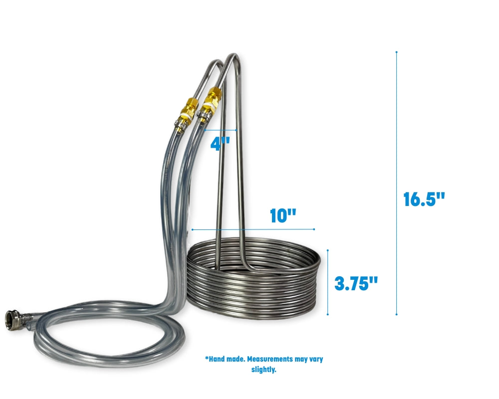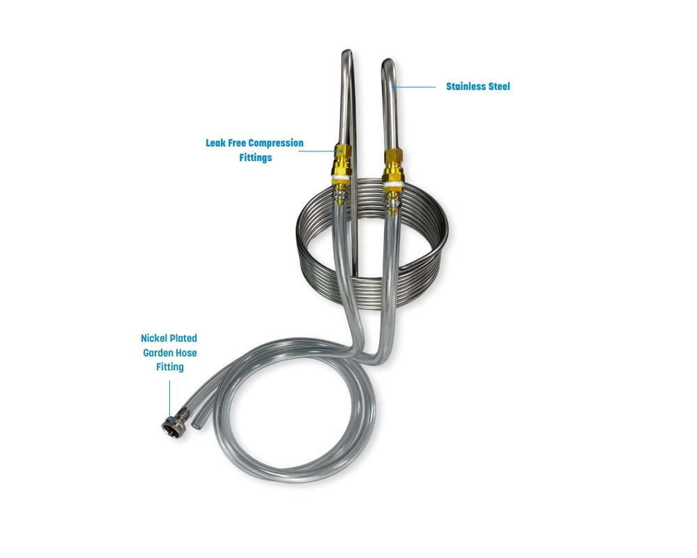 50-Foot Chiller: Engineered for enhanced cooling in larger batches, effectively managing wort chilling for batches ranging from 5 to 10 gallons.